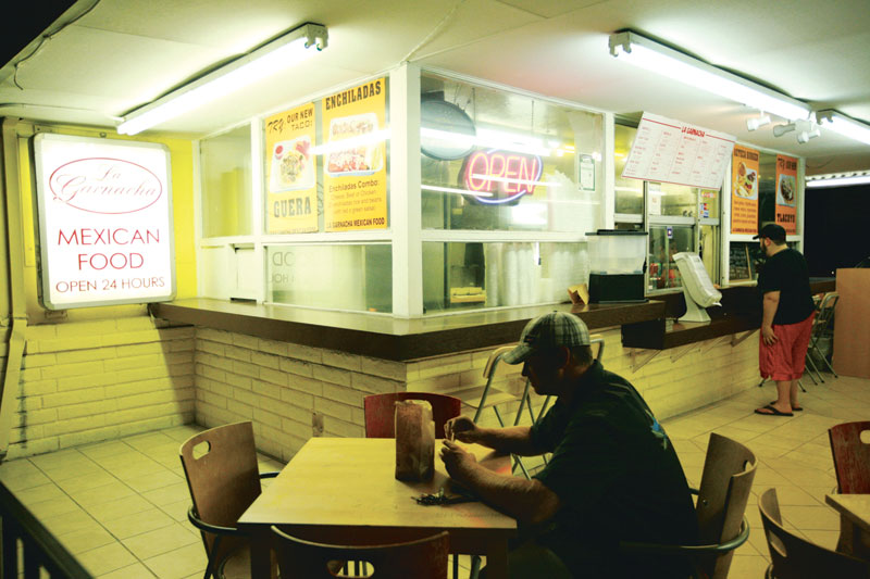 Garnacha peddles burritos and tortas, among other things, 24 hours a day. So you can stop by after a few hours at the Flame Club, order a veggie burrito with french fries in it, flop down on the Ikea chairs littering the patio and stave off your impending hangover.