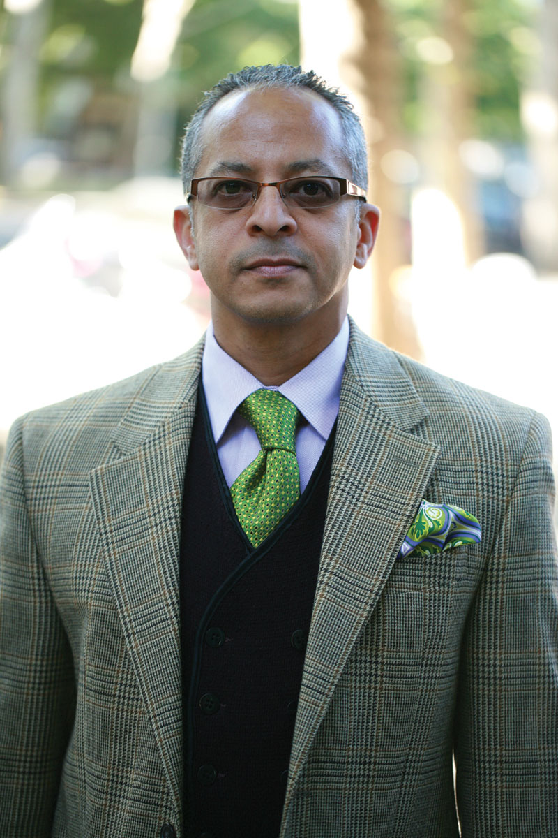 Local art enthusiast and realtor Moka Davis is one of those fellows who makes one think, ‘I should be taking a lot more chances with my look.’ Davis always looks crisp and sharp in his signature bowtie, whether it’s paired with a bright purple tuxedo shirt or a classic seersucker suit.
