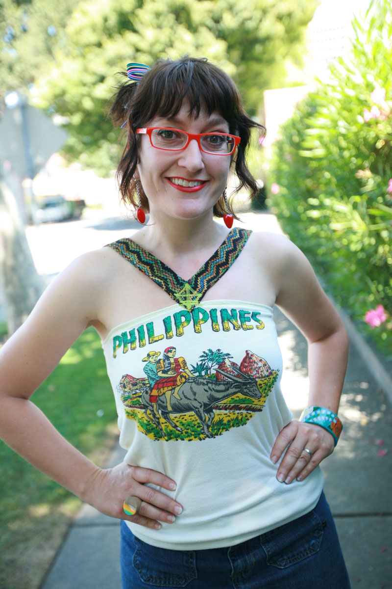 Well, my artwork is often very colorful and incorporates pattern. I’d say the same is true of my clothing. I love bright colors and putting together different combinations that I haven’t tried before with the same old things. The process that I go through when getting dressed is a lot like how I make a collage, involves a lot of experimentation before I get a result I like. I guess my recent work involving drawings and paintings of garbage piles sort of loosely relates to my style since so much of my wardrobe is made up of second-hand clothes that someone else didn’t want…I’m inspired by so many different things when creating my work, I guess we call that eclectic. My outfits are also that way, I pair expensive with cheap, old with new, exotic with pedestrian.