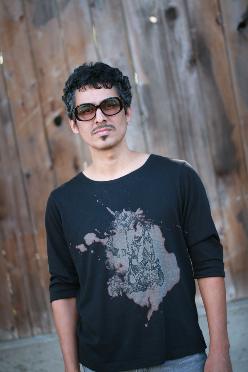 Photographer and Bows Collective Gallery Exhibition Manager Jesse Vasquez cuts a dashing figure with his corkscrew salt-and-pepper hair and his signature chunky, tinted glasses. His ‘70s-era brown leather jacket and wild hair give him a retro vibe, but the man can be fashion forward at times: he’s not afraid to rock a deep V neck or a jaunty scarf.