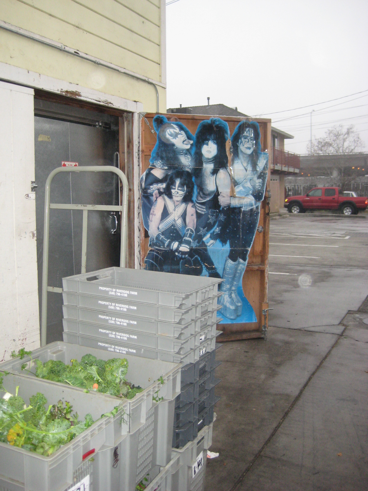 I rode around the alley behind Danny’s place to see if I could see more. I couldn’t, but I found this. I call it Kisses and Kale.